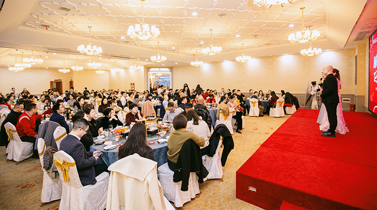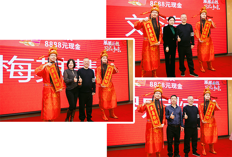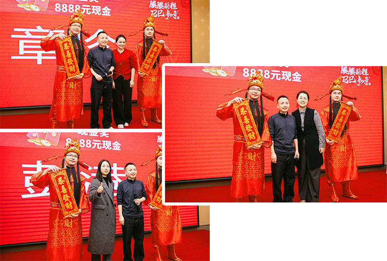 隨后,螣螣前程 巳巳如意——2024年新春團(tuán)拜會啟幕,瞬間點(diǎn)燃全場激情。舞臺上,舞者似靈動精靈,舞步輕盈,踏響新年節(jié)拍;靈魂歌手一展天籟,歌聲悠揚(yáng),唱響新春樂章;創(chuàng)意小品,奇思妙想;財神舞,喜氣洋洋燃爆全場;抽獎環(huán)節(jié)更是將全場氛圍一次次推向高潮,歡呼聲與祝福聲交織,驚喜與歡樂在會場四處綻放,每一個綠之韻人沉浸其中,其樂融融。最后,全體綠之韻家人舉杯同慶,在這熱鬧非凡的氛圍中,共同憧憬新一年的輝煌。