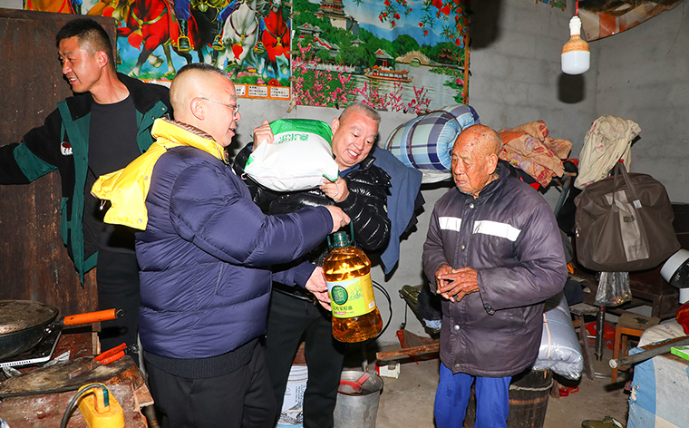 活動(dòng)結(jié)束后,胡國(guó)安董事長(zhǎng)、勞嘉總裁、胡均安常務(wù)副總裁帶領(lǐng)綠之韻愛(ài)心志愿者實(shí)地走訪了當(dāng)?shù)氐睦щy戶(hù)家庭。每踏入一戶(hù)人家,胡國(guó)安董事長(zhǎng)都以親切的笑容和關(guān)切的話語(yǔ),細(xì)致入微地詢(xún)問(wèn)村民的身體情況,深入了解他們的日常生活情況。胡國(guó)安董事長(zhǎng)親手將準(zhǔn)備的大米、食用油、慰問(wèn)金等新春慰問(wèn)物資一一送到村民手中,并送上新春祝福:“祝鄉(xiāng)親們新年快樂(lè),一年更比一年好!”