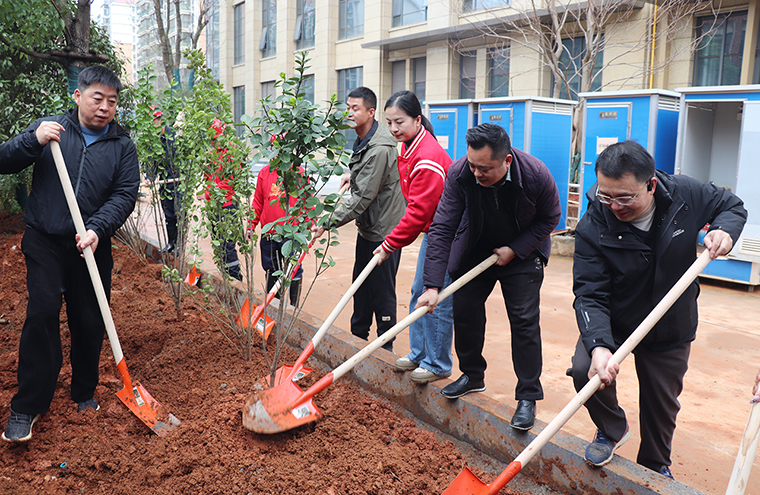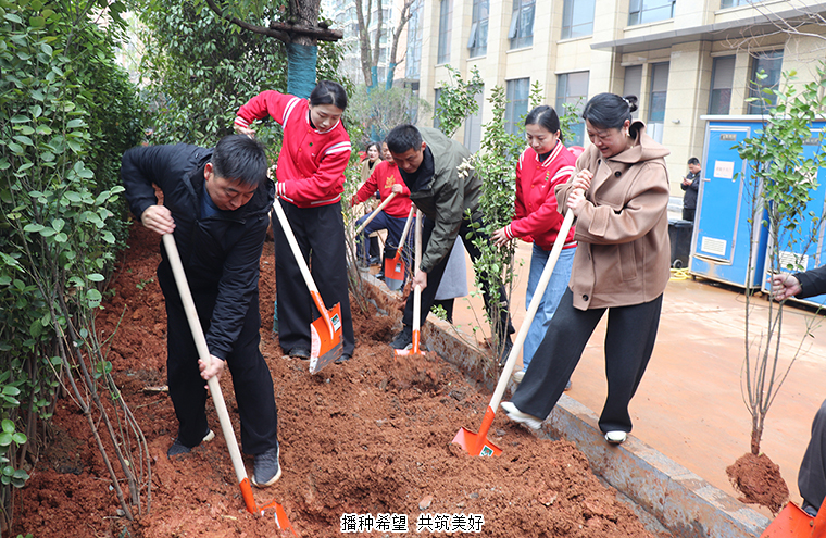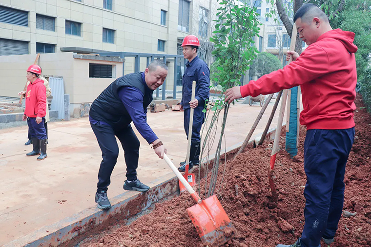 三月的風(fēng)裹挾著春信的密語(yǔ),將春意潑灑在綠之韻中心的園林間。3月11日,在植樹節(jié)來臨之際,綠之韻中心黨支部以“播種希望 共筑美好”為主題,在綠之韻中心開展植樹節(jié)主題黨日活動(dòng)。綠之韻集團(tuán)總裁勞嘉、綠之韻公益基金會(huì)秘書長(zhǎng)蔣文、湖南綠之韻房地產(chǎn)開發(fā)有限公司總經(jīng)理周君四,副總經(jīng)理勞毅與綠之韻中心黨支部書記徐繼雷帶領(lǐng)黨員志愿者們共執(zhí)春鋤,以草木為墨,為綠之韻中心園林項(xiàng)目工筆春色。