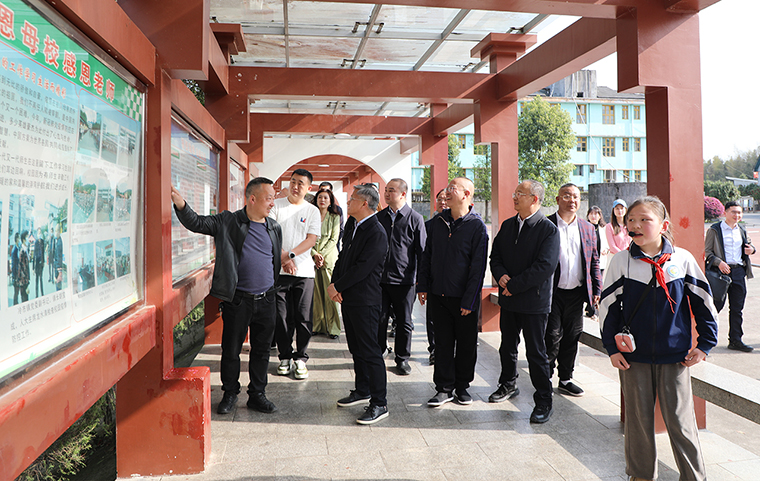 活動伊始,致公黨湖南省委會調研組一行參觀了大橋學校校園文化長廊和基礎設施,并對校史和辦學理念進行了詳細的了解。在文化長廊上,校風校紀與捐資助學的愛心人士的概述串聯(lián)成“暖心助學長卷”,展現(xiàn)教育幫扶的深遠影響。