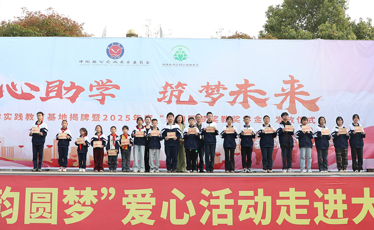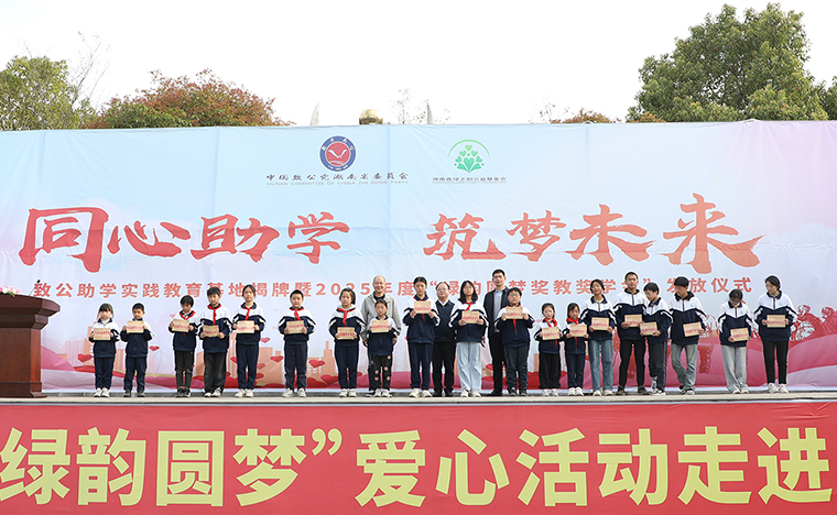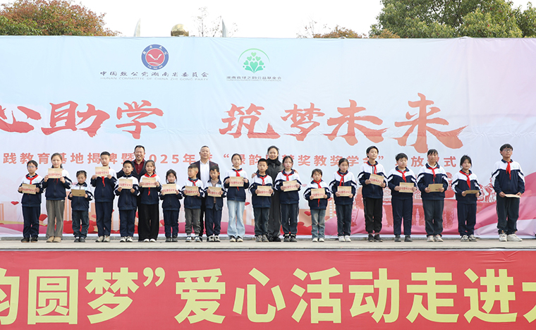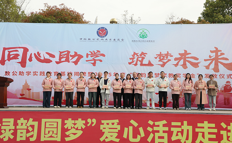 為營造濃厚的關心人才、尊重人才、支持人才以及愛學、勤學、好學、比學的濃厚氛圍,2023年,致公黨湖南省委會、湖南省綠之韻公益基金會“綠韻圓夢行動”捐贈50萬元愛心資金用于在安化大橋學校設立“獎教獎學金”,支持鄉(xiāng)村振興文化建設和教育事業(yè)發(fā)展。4月2日,致公助學實踐教育基地揭牌暨2025年度“綠韻圓夢獎教獎學金”發(fā)放儀式再次走進安化縣冷市鎮(zhèn)大橋學校,為鄉(xiāng)村教育注入了新的活力。