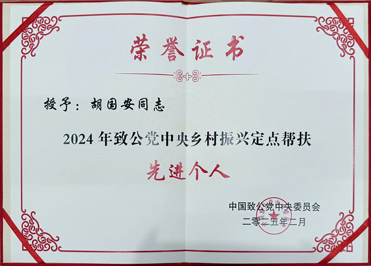 致力為公,是每一位致公黨員心底始終堅守的承諾。多年來,綠之韻集團在致公黨員、綠之韻集團董事長胡國安的帶領下,始終秉持“造福人類、回饋社會”的企業(yè)理念,踴躍參與多項社會公益事業(yè),積極響應省委統(tǒng)戰(zhàn)部、致公黨省委、市委的號召,奮力投身“一家一”助學就業(yè)·同心溫暖工程、助力扶貧攻堅、鄉(xiāng)村振興工程?;顒悠陂g,湖南省人大常委會副主任、致公黨省委會主委胡旭晟為胡國安董事長頒發(fā)“2024年致公黨中央鄉(xiāng)村振興定點幫扶先進個人”榮譽證書。胡國安董事長表示,作為一名致公黨員,他將時刻銘記自身的責任與擔當,在致公黨湖南省委會、致公黨長沙市委會的正確領導下,全力以赴,積極作為。未來,他會把這份榮譽化作動力,深入學習,提升自身能力;發(fā)揮企業(yè)優(yōu)勢,帶動更多資源向鄉(xiāng)村傾斜;帶動更多致公黨員和企業(yè)家參與,探索更多創(chuàng)新幫扶模式,為鄉(xiāng)村振興與社會發(fā)展持續(xù)貢獻力量。