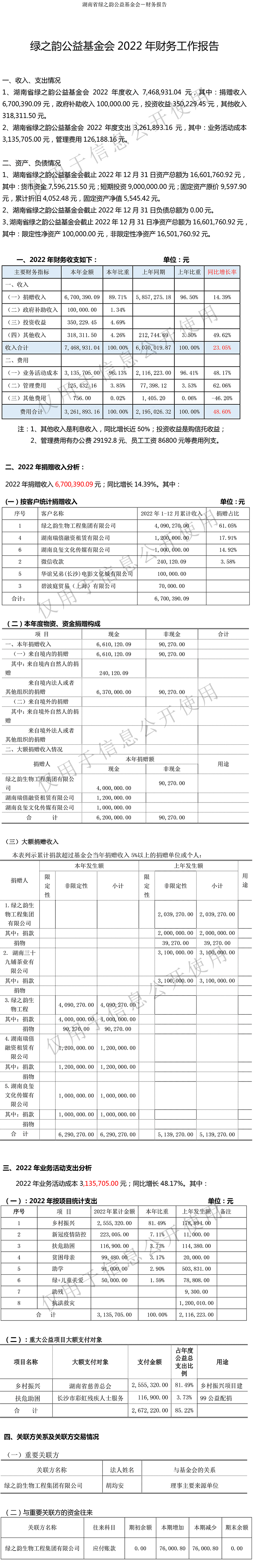 綠之韻公益基金會(huì) 2022 年財(cái)務(wù)工作報(bào)告
