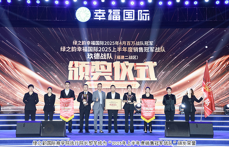 面向浩瀚未來,責任是啟航的風帆。敬未來,是熾熱雙手托舉使命的星辰,是鐵肩擔當筑牢事業(yè)的疆域。綠之韻國際商學(xué)院執(zhí)行院長黎芋成作《敬未來》主題分享,他的話語如戰(zhàn)鼓擂動,點燃了每一個幸福代言人心中向新而行的火焰,為家人們帶來了新的思路與啟發(fā)。精彩的分享后,榮耀的光芒再次點亮,綠之韻集團常務(wù)副總裁胡均安、綠之韻集團市場營銷中心總經(jīng)理戴三省為綠之韻幸福國際“2025上半年度銷售增長率冠軍”江徽戰(zhàn)區(qū)頒發(fā)榮譽;綠之韻集團總裁勞嘉、綠之韻國際商學(xué)院執(zhí)行院長黎芋成為“2025上半年度銷售增長總量冠軍”兩湖戰(zhàn)區(qū);綠之韻集團總裁勞嘉,綠之韻集團運營總裁、幸福導(dǎo)師夏運良共同為綠之韻幸福國際“2025上半年度銷售總量冠軍”福建一戰(zhàn)區(qū)頒發(fā)榮譽。