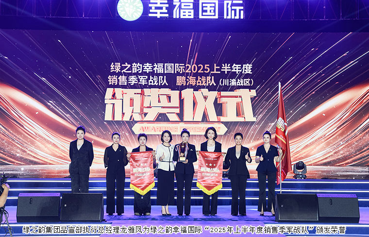 綠之韻幸福國際的榮耀殿堂里,百萬戰(zhàn)隊的旌旗迎風招展,熠熠生輝。那些在市場一線沖鋒陷陣的戰(zhàn)隊,如同璀璨的星辰,閃耀著奪目的光芒。他們以無畏的勇氣和堅韌的毅力,帶領(lǐng)團隊取得了一個又一個輝煌的成績。綠之韻集團市場運營中心市場業(yè)務(wù)總監(jiān)譚紅、市場運營中心市場業(yè)務(wù)總監(jiān)喻鳴鸞為“綠之韻幸福國際4-5月單月達成百萬戰(zhàn)隊”頒發(fā)榮譽。綠韻悅喜智能科技有限公司總經(jīng)理楊邢軒,綠之韻幸福國際市場商學(xué)院特聘教授、綠韻悅喜智能科技有限公司首席研發(fā)專家駱春崗共同為“綠之韻幸福國際4-5月雙月達成百萬戰(zhàn)隊”頒發(fā)榮譽。綠之韻幸福國際市場商學(xué)院院長、綠之韻健康專家委員會專家委員侯俊霞為綠之韻幸福國際“2025年5月百萬戰(zhàn)隊冠軍”玖樂戰(zhàn)隊頒發(fā)榮譽;綠之韻國際商學(xué)院執(zhí)行院長黎芋成、綠之韻集團運營部執(zhí)行總經(jīng)理·國際商學(xué)院常務(wù)副院長陳敏、綠之韻集團品宣部執(zhí)行總經(jīng)理龍雅鳳依次為綠之韻幸福國際“2025年上半年度銷售冠亞季軍戰(zhàn)隊”玖德戰(zhàn)隊、玖翔戰(zhàn)隊、鵬海戰(zhàn)隊頒發(fā)榮譽。戰(zhàn)旗所向,所向披靡,這正是綠之韻幸福國際“戰(zhàn)區(qū)化管理”最生動的演繹。