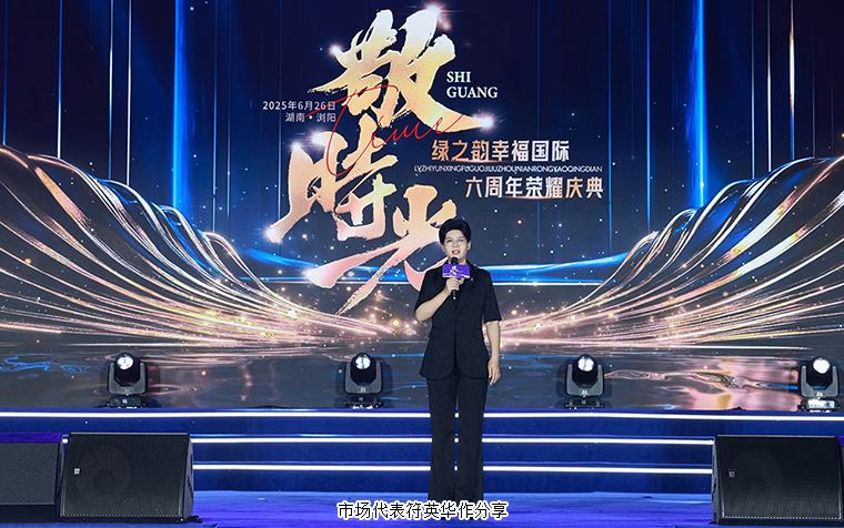 在全場熾熱的目光聚焦中,綠之韻集團運營總裁、幸福導(dǎo)師夏運良深情回顧幸福國際六年璀璨旅程:今天,我們以“敬時光”之名相聚,致敬六年同行者?!芭e一杯全力以赴敬時光”——這句歌詞,道盡了我們六年的奮斗與熱愛。今天,我們相聚不為慶祝數(shù)字,而是致敬這段由你們書寫的歷史:它是2019年6月23日綠之韻幸福國際的啟航,我們懷揣"讓中醫(yī)養(yǎng)生走進千家萬戶"的初心,《奮斗,向幸?!返奶柦锹曋校凹业奈幕?,水的精神”滋養(yǎng)出幸福國際的文化,開啟了幸福代言人的征程,是六年風雨中每一個具體的你、具體的事、具體的堅持。六年風雨路,步步皆印證:2020年疫情肆虐,我們轉(zhuǎn)戰(zhàn)線上,福建市場破土、悅喜工廠投產(chǎn),在暫停的世界里逆流而上;2021年產(chǎn)品邁入2.0時代,研發(fā)團隊以匠心打磨健康守護;2022年戰(zhàn)區(qū)化與"人才、產(chǎn)品、發(fā)展"三大長期主義落地,為今日厚積薄發(fā)奠基;2023年百萬戰(zhàn)隊崛起,《我們的夢》照進現(xiàn)實;2024年五周年里程碑印證了這條"難而正確"的路——你們的思維、格局與精神蛻變,讓每一步奮斗都有了回響。六周年,是穩(wěn)健 “走” 向堅定 “跑” 的轉(zhuǎn)折。我相信,在機遇與挑戰(zhàn)并存的航道上,我們定能跑出加速度與高質(zhì)量。感恩胡總、勞總及集團伙伴們的守護,感恩家人與每一位同行者!未來的路,讓我們一起敬時光,敬這讓我們更堅定的時光,敬我們永不褪色的初心,也敬我們這群守初心、創(chuàng)造幸福的同行者!未來的路,我們一起健健康康的走,踏踏實實的走,長長久久的走,走向下一個健康幸福的六年。