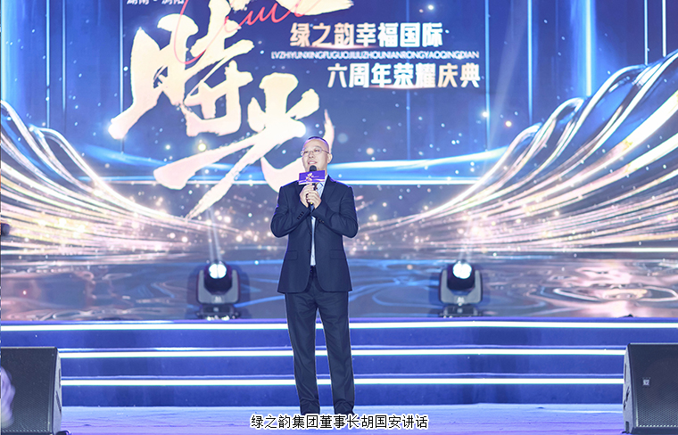 在全場最為熱烈的掌聲中,綠之韻集團董事長胡國安上臺發(fā)表重要講話。胡國安董事長首先向綠之韻幸福國際的六周歲生日送上了最真摯的祝福,對今天獲得獎項的所有市場精英表示熱烈的祝賀。他向未能來到現(xiàn)場,通過視頻等方式收看綠之韻幸福國際六周年慶典的所有幸福國際家人們致以誠摯的問候和衷心的感謝。他表示,每一次走進幸福國際的會場,內(nèi)心總是充滿感動與振奮。今天,站在這個舞臺上,看到所有獲獎的精英用行動詮釋了榜樣的力量,這份堅持與付出令人由衷敬佩。近年來,"我很健康,我在傳播健康的路上,我在從事健康的事業(yè)"這三句話已成為我們共同的心聲?;赝G之韻幸福國際成立之初,恰逢國家發(fā)布《2020-2030健康中國發(fā)展規(guī)劃》,我們以敏銳的行業(yè)洞察,順勢而為,與國家政策同頻共振。剛才與夏總一同回顧各團隊發(fā)展歷程時,那些奮斗的足跡與成長的軌跡,讓我深感欣慰。今日臺上每一位獲獎?wù)叩臉s耀,都印證了成功的真諦——堅持。而面向未來,若問持續(xù)成功的秘訣,我想那便是:堅持再堅持!最后跟現(xiàn)場的家人們分享一句話:人生之河,奔騰向前,我心堅定,為夢前行。愿所有綠之韻家人,都能在這條健康事業(yè)的道路上堅定前行,讓夢想照進現(xiàn)實,共同書寫更輝煌的篇章。