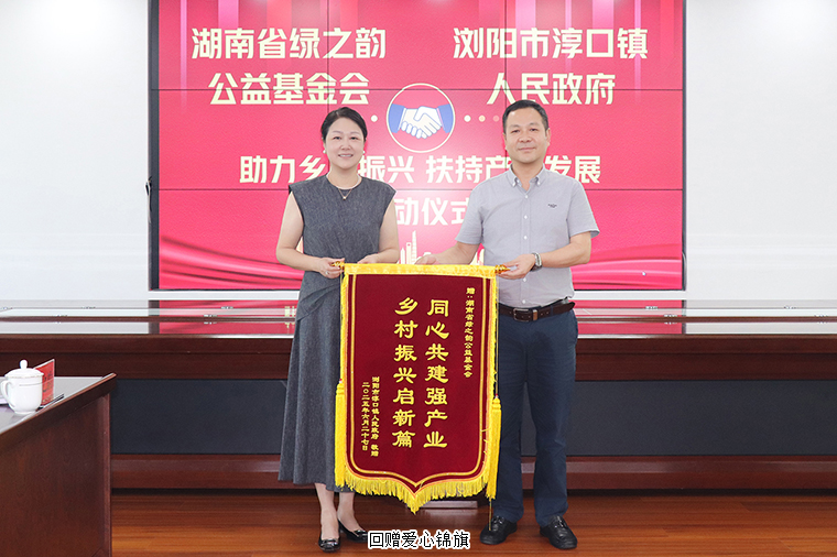 為深入貫徹落實(shí)鄉(xiāng)村振興戰(zhàn)略,助力鄉(xiāng)村產(chǎn)業(yè)高質(zhì)量發(fā)展,2025年6月27日,湖南省綠之韻公益基金會與淳口鎮(zhèn)人民政府聯(lián)合開展的 “助力鄉(xiāng)村振興 扶持產(chǎn)業(yè)發(fā)展” 活動在淳口鎮(zhèn)政府舉行。中共瀏陽市淳口鎮(zhèn)黨委副書記、鎮(zhèn)長高優(yōu),中共瀏陽市淳口鎮(zhèn)黨委副書記羅信,瀏陽市淳口鎮(zhèn)人大主席余舟,綠之韻集團(tuán)總裁、綠之韻公益基金會理事長勞嘉,綠之韻集團(tuán)黨委書記劉云等領(lǐng)導(dǎo)參加活動。綠之韻公益基金會向淳口鎮(zhèn)鎮(zhèn)政府捐贈20萬元用于鄉(xiāng)村振興產(chǎn)業(yè)建設(shè),為淳口鎮(zhèn)產(chǎn)業(yè)發(fā)展注入強(qiáng)勁動力,推動鄉(xiāng)村振興戰(zhàn)略落地生根。