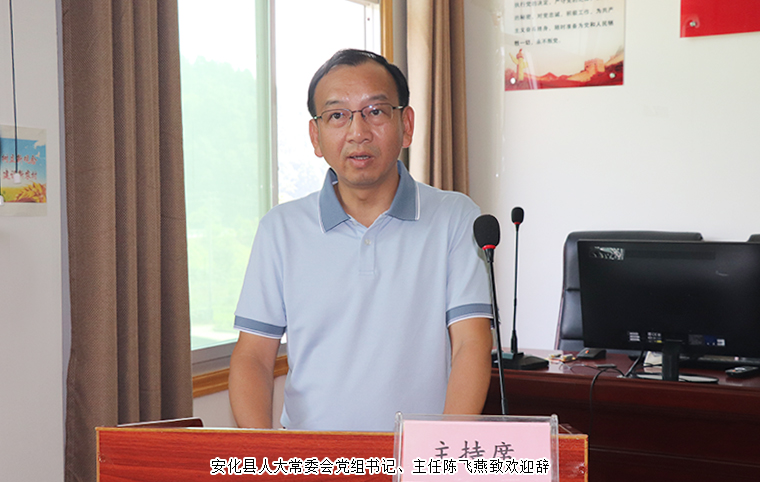 活動伊始,安化縣人大常委會黨組書記、主任陳飛燕致歡迎辭。首先他代表安化縣委、縣人大、縣政府,歡迎各位到來,向愛心企業(yè)的慷慨捐贈致敬,感謝各界對安化鄉(xiāng)村振興的支持。鄉(xiāng)村振興是民心所向,此次捐贈助力胡家村“美麗屋場” 建設(shè),是責(zé)任擔(dān)當(dāng)與情懷傳遞,將為鄉(xiāng)村振興注入動力。他表示,近年安化以鄉(xiāng)村振興統(tǒng)攬 “三農(nóng)” 工作,胡家村變化顯著,但鄉(xiāng)村振興離不開社會各界的合力托舉。期待更多企業(yè)和社會人士關(guān)注安化、走進安化,在產(chǎn)業(yè)幫扶、人才培育、文化振興等領(lǐng)域與我們攜手,共同書寫安化鄉(xiāng)村振興的嶄新篇章。