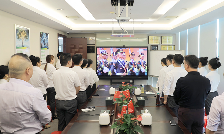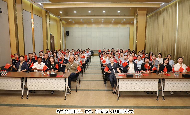 2025年9月3日上午,紀念中國人民抗日戰(zhàn)爭暨世界反法西斯戰(zhàn)爭勝利80周年閱兵式在北京天安門廣場隆重舉行。為深刻銘記中國人民抗日戰(zhàn)爭暨世界反法西斯戰(zhàn)爭勝利的偉大歷史,弘揚愛國主義精神和革命英雄主義傳統(tǒng),進一步增強企業(yè)凝聚力和黨員黨性修養(yǎng),綠之韻集團全體職工、黨員、各市場家人集中觀看了這場盛大閱兵盛典,感受祖國風(fēng)采,凝聚奮進力量。
