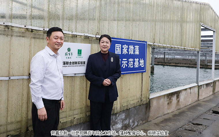 在簽約儀式前,勞嘉總裁一行應(yīng)邀參觀了賜百年院士工作站、螺旋藻繁育中心、藻種資源庫、光生物反應(yīng)器實驗池及CNAS認(rèn)證科研中心,對賜百年在螺旋藻種質(zhì)培育、規(guī)模化養(yǎng)殖及精深加工領(lǐng)域的專業(yè)水準(zhǔn)給予高度評價。其中,院士工作站作為企業(yè)高層次科研平臺,匯聚了微藻研究領(lǐng)域的頂尖專家團(tuán)隊,為產(chǎn)業(yè)創(chuàng)新發(fā)展提供了強(qiáng)有力的支持。在簽約儀式環(huán)節(jié),勞嘉總裁與高志剛董事長共同簽署戰(zhàn)略合作協(xié)議,并為“綠之韻集團(tuán)-賜百年微藻聯(lián)合創(chuàng)新實驗室”揭牌。聯(lián)合創(chuàng)新實驗室將依托賜百年的尖端科研實力與綠之韻的產(chǎn)學(xué)研銷轉(zhuǎn)化優(yōu)勢,聚焦螺旋藻功能成分提取與功效驗證,共同推進(jìn)螺旋藻創(chuàng)新產(chǎn)品的研發(fā)與市場應(yīng)用。