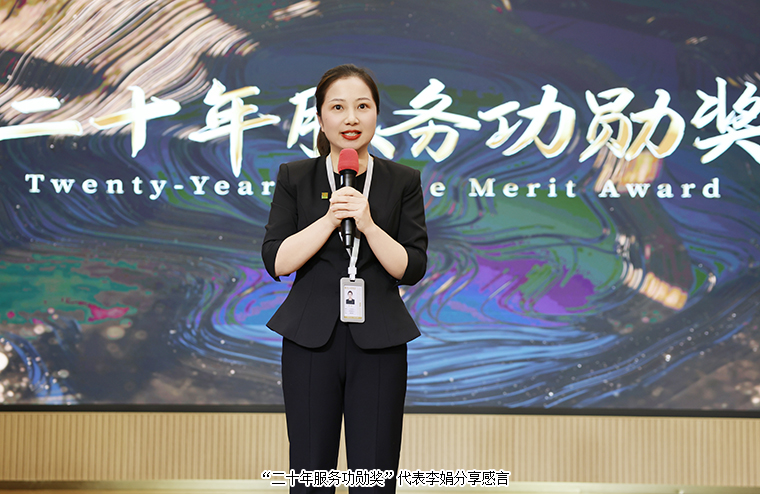 榜樣引領(lǐng)方向,榮耀致敬堅(jiān)守。大會(huì)隆重表彰了2025年度“五年服務(wù)英才獎(jiǎng)”、“十年服務(wù)忠誠(chéng)獎(jiǎng)”與“二十年服務(wù)功勛獎(jiǎng)”獲得者,向與企業(yè)風(fēng)雨同舟的忠誠(chéng)員工致以崇高敬意。勞嘉總裁、胡均安常務(wù)副總裁依次為獲獎(jiǎng)優(yōu)秀個(gè)人頒發(fā)榮譽(yù)獎(jiǎng)杯和證書(shū)。獲獎(jiǎng)代表蔣文、李娟、牛小紅、羅瓊蕾深情分享與綠之韻共同成長(zhǎng)的心路歷程,她們以歲月為筆,以實(shí)干為墨,生動(dòng)詮釋了“擇一事終一生”的執(zhí)著與熱愛(ài),為企業(yè)文化注入了深厚而溫暖的底蘊(yùn)。