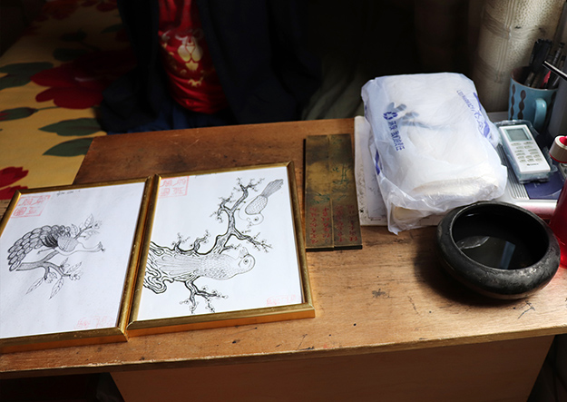 出院后,周國民又在床上躺了6年,做過數(shù)十次背部的修復(fù)手術(shù),才終于能起身。醫(yī)生說他能活下來就已經(jīng)是個奇跡。他也曾灰心喪氣,但父母的眼淚與子女的期盼讓他終于還是挺了過來。沒有了手腳,從此,嘴成了他唯一可以使用的工具。在他的房間,他向我們演示自己怎么用嘴脫衣睡覺、穿衣起床,疊被子。他的床頭就是他練習(xí)用嘴寫字畫畫的案板。沒有經(jīng)過任何的學(xué)習(xí),也沒有人指點。周國民用嘴一筆筆畫畫、寫字,炎夏、寒冬,他始終堅持著,正常人能夠做到的,他只要多花點時間也一定能夠做到。