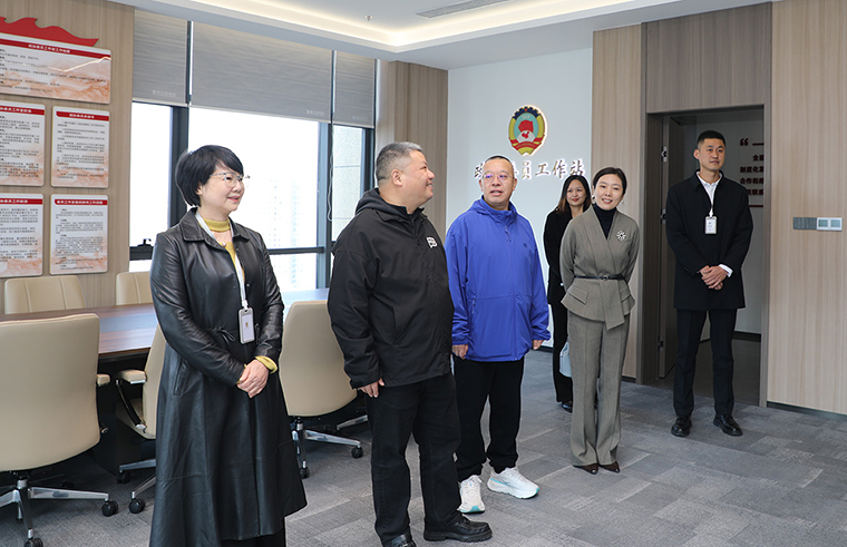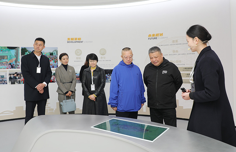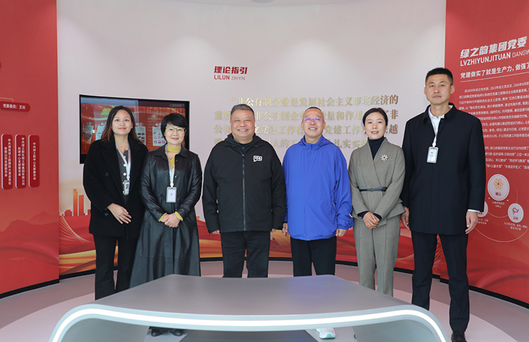 陳剛主席一行先后走進綠之韻中心數(shù)智化科技展廳、黨建教育陣地與政協(xié)委員工作站。數(shù)智化科技展廳以 “水之道” 文化為核心設(shè)計理念,融合東方哲學(xué)智慧與西方先進技術(shù),通過數(shù)字化互動系統(tǒng)構(gòu)建起多感官沉浸式體驗空間,全面展現(xiàn)了企業(yè)發(fā)展歷程、企業(yè)文化、全鏈條產(chǎn)品體系、核心科研突破及公益實踐足跡。在黨建教育陣地,劉云書記詳細(xì)匯報了企業(yè)非公黨建成果:自2006年成立黨支部以來,企業(yè)已構(gòu)建起黨委為核心、工會與公益基金會協(xié)同聯(lián)動的黨建格局,創(chuàng)新推行 “三色三有三亮” 工程與 “三維管理模式”,打造特色黨建品牌,實現(xiàn)黨建與企業(yè)發(fā)展同頻共振。