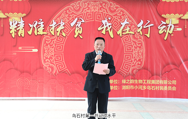 本次活動(dòng)由烏石村馮騁、張娟老師共同主持。活動(dòng)伊始,烏石村第一書(shū)記鄧水平致歡迎辭。他首先對(duì)綠之韻集團(tuán)連續(xù)多年熱心公益、助力小河鄉(xiāng)精準(zhǔn)扶貧的行為表示衷心的感謝。近年來(lái),烏石村的精準(zhǔn)扶貧工作取得了卓有成效的進(jìn)步,這得益于各級(jí)黨委政府的正確領(lǐng)導(dǎo)與愛(ài)心企業(yè)的幫扶。未來(lái),希望在大家的共同努力下,烏石村能早日脫去“貧困”的帽子,奔向幸福的小康生活。