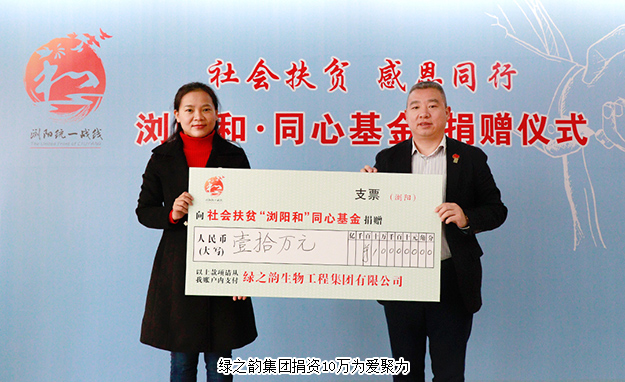 胡均安副總裁在捐贈(zèng)活動(dòng)現(xiàn)場(chǎng)表示,在瀏陽這塊紅色沃土,綠之韻生根發(fā)芽、茁壯成長(zhǎng),受到黨和政府以及各級(jí)部門的關(guān)懷與支持。“致富思源、富而思進(jìn)”是綠之韻一直堅(jiān)持的企業(yè)發(fā)展理念,社會(huì)扶貧“瀏陽和·同心基金”的成立為我們參與社會(huì)扶貧提供了新的途徑,我們將一如既往地積極承擔(dān)企業(yè)社會(huì)責(zé)任,在企業(yè)健康發(fā)展的同時(shí),努力讓企業(yè)的發(fā)展成果惠及更多需要幫助的人,用行動(dòng)和愛心與瀏陽這座城市共同成長(zhǎng)與發(fā)展!