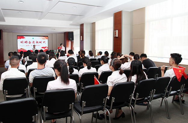 2018年7月9日,綠之韻集團(tuán)黨委組織開展了以“砥礪奮進(jìn)新時代,建設(shè)美好新綠韻”為主題的演講比賽。綠之韻集團(tuán)董事、總裁勞嘉,副總裁劉淑娟,副總經(jīng)理梅其慧,黨委書記劉云,工會主席兼集團(tuán)辦公室行政總監(jiān)馮紅受邀擔(dān)任本次比賽評委。來自綠之韻集團(tuán)總部、綠之韻國際大酒店、綠之韻保健日用品、綠之韻湘潭大酒店等黨支部的9名選手參加本次演講比賽。綠之韻集團(tuán)團(tuán)委書記王壯擔(dān)任主持。