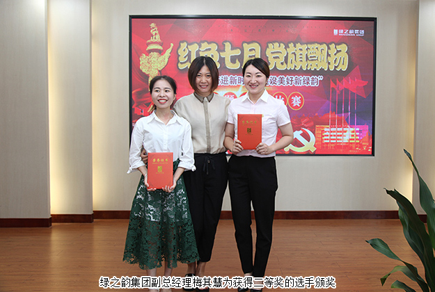 比賽最后,綠之韻集團(tuán)黨委書記劉云宣讀比賽結(jié)果并作總結(jié)發(fā)言。她在講話中說道,此次活動的成功舉辦首先要感謝公司領(lǐng)導(dǎo)與高管的高度重視與熱情參與,感謝各位支部書記帶領(lǐng)支部黨員積極參加集團(tuán)黨建活動,大家的肯定與支持是推進(jìn)集團(tuán)黨建工作的力量源泉。隨后,她對今天參加比賽的所有選手給予了肯定和鼓勵,并對新發(fā)展的15位預(yù)備黨員表示衷心的祝賀。她希望,在集團(tuán)公司黨委的帶領(lǐng)下,廣大黨員能凝心聚力為企業(yè)發(fā)展奉獻(xiàn)青春和力量,共同開創(chuàng)綠之韻更加美好的未來!