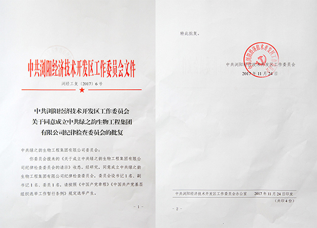 2017年12月19日,中共綠之韻生物工程集團有限公司紀律檢查委員會成立暨第一屆委員選舉大會成功召開。會上,根據(jù)中共瀏陽經(jīng)濟技術(shù)開發(fā)區(qū)工作委員會[2017]6號文件批復(fù),中共綠之韻生物工程集團有限公司紀律檢查委員會正式成立。會上選舉并產(chǎn)生了第一屆紀委班子。綠之韻集團常務(wù)副總經(jīng)理胡均安,副總經(jīng)理梅其慧,黨委書記劉云、副書記許達仲攜各黨支部書記、全體黨員參加會議。本次大會還特別邀請了瀏陽經(jīng)開區(qū)黨群工作局科長李慶參加會議。