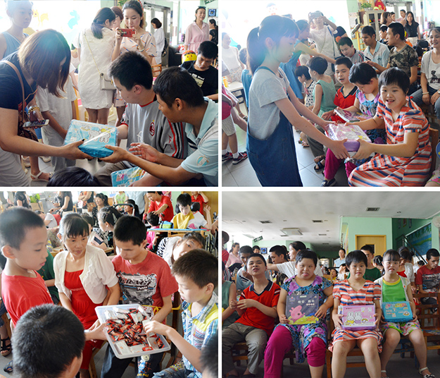 捐贈儀式上,綠之韻集團董事、總裁勞嘉與長沙彩虹孤殘兒童服務中心晨光中心主管肖鏡冰女士親切握手,并送上了愛心慰問金及捐贈物資。來自綠之韻志愿者的大小朋友們也為晨光中心的孩子們獻上了自己準備的禮物——玩具、圖書、畫筆等等。孩子與孩子之間的交流永遠是充滿美好而又單純的。不到半天的時間,孩子們便打成了一片,閱讀、繪畫,相互玩耍、游戲,現(xiàn)場成了一片歡樂的海洋。