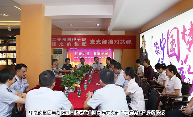 為深入貫徹落實(shí)黨的十八屆五中、六中全會(huì)精神,進(jìn)一步加強(qiáng)黨的基層組織建設(shè),增強(qiáng)基層黨支部工作活力和內(nèi)生動(dòng)力,2017年7月21日,綠之韻集團(tuán)與瀏陽市國稅局工業(yè)園分局黨支部“結(jié)對(duì)共建”啟動(dòng)儀式在綠之韻黨建文化教育基地成功舉行。瀏陽市國稅局工業(yè)園分局局長卜輝、副局長陳程,綠之韻集團(tuán)董事、總裁勞嘉,綠之韻集團(tuán)黨委書記劉云、副書記許達(dá)仲等出席活動(dòng)。
