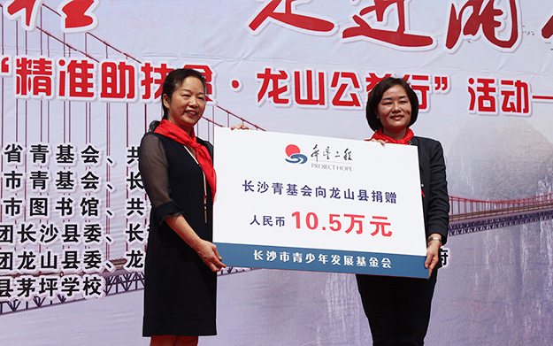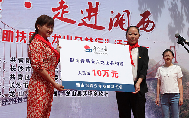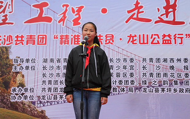 為認(rèn)真落實(shí)黨中央、省市委精準(zhǔn)扶貧精準(zhǔn)脫貧決策部署,進(jìn)一步整合社會(huì)愛(ài)心資源,幫助優(yōu)秀貧困學(xué)生健康、快樂(lè)地成長(zhǎng),2017年6月16日,希望工程·走進(jìn)湘西——長(zhǎng)沙共青團(tuán)“精準(zhǔn)助扶貧·龍山公益行”活動(dòng)在龍山縣茅坪學(xué)校成功舉行。
