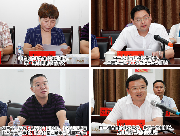 長(zhǎng)沙市政協(xié)副主席、市工商聯(lián)主席彭繼球在講話中表示,此次市政協(xié)、市委統(tǒng)戰(zhàn)部、市工商聯(lián)、長(zhǎng)沙金霞經(jīng)開區(qū)組織來(lái)到龍山縣對(duì)口扶貧活動(dòng),深入對(duì)接,精準(zhǔn)幫扶,希望在各方努力下,有效推進(jìn)各對(duì)口扶持項(xiàng)目的實(shí)施,發(fā)揮長(zhǎng)沙市特色優(yōu)勢(shì),集結(jié)各方力量和資源,共同發(fā)力,為龍山的精準(zhǔn)脫貧加油助力。中共長(zhǎng)沙市委常委、市委統(tǒng)戰(zhàn)部部長(zhǎng)譚小平在講話中指出,市委市政府、市工商聯(lián)帶著責(zé)任、感情和友誼過來(lái),針對(duì)龍山縣進(jìn)行精準(zhǔn)扶貧、對(duì)口幫扶,我們有信心有決心有責(zé)任將精準(zhǔn)扶貧落到實(shí)處,希望有更多像綠之韻這樣省內(nèi)知名企業(yè)在資金、項(xiàng)目等方面加大對(duì)湘西州龍山縣的傾斜支持,幫助貧困地區(qū)加快脫貧發(fā)展;龍山縣貧困群眾也要發(fā)揚(yáng)自力更生、艱苦奮斗的精神,在當(dāng)?shù)攸h委政府的幫助下,盡早脫貧致富。
