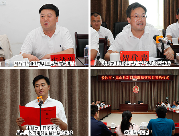 長(zhǎng)沙市政協(xié)主席文樹勛在簽約儀式上作重要講話,他指出:近年來(lái),為貫徹國(guó)家“精準(zhǔn)扶貧、精準(zhǔn)脫貧”戰(zhàn)略思想,全面落實(shí)中央和省委省政府部署要求,長(zhǎng)沙市委市政府以及市直部門主要負(fù)責(zé)同志,先后數(shù)次專程赴龍山縣開展對(duì)口幫扶工作,特別是省會(huì)城市的企業(yè)家們,致富不忘回報(bào)社會(huì),心系龍山脫貧發(fā)展,龍山經(jīng)濟(jì)社會(huì)發(fā)展取得了長(zhǎng)足的進(jìn)步、城鄉(xiāng)居民收入發(fā)生了翻天覆地的變化,龍山縣精準(zhǔn)脫貧指日可待。他提出了下一步龍山縣茨巖塘鎮(zhèn)的精準(zhǔn)扶貧工作三點(diǎn)要求:一是要抓好產(chǎn)業(yè)扶持,要把長(zhǎng)沙的資金、技術(shù)、管理優(yōu)勢(shì)和茨巖塘鎮(zhèn)的資源稟賦和產(chǎn)業(yè)特色結(jié)合對(duì)接起來(lái),扶持一批生態(tài)、文化、民俗產(chǎn)業(yè);二是要抓好項(xiàng)目援建,要突出民生重點(diǎn),解決鄉(xiāng)民的衣食住行首要問題;三是要抓好教育培訓(xùn),扶貧先扶志,多舉辦龍山農(nóng)民致富培訓(xùn)班、加強(qiáng)技術(shù)人員現(xiàn)場(chǎng)指導(dǎo),提高農(nóng)戶種養(yǎng)殖水平,為農(nóng)山人民脫貧致富提供智力支持。