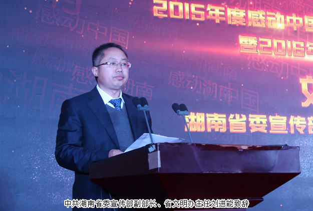 會上,中共湖南省委宣傳部副部長、省文明辦主任劉進能為活動致辭。湖南省人大常委會副主任李友志發(fā)表重要講話,他在講話中指出:通過“感動湖南”活動的開展,希望在全社會營造一種助人為樂、積極向上的良好氛圍,激蕩起人們向上、向善的信心和勇氣。無論是今天站在舞臺上的2015年度“感動湖南人物”,還是評選入圍2016年度的“感動湖南”人物代表,他們無不向全社會展示了敢為人先、無私大愛的湖南風骨。我們要向這些善行好人、行業(yè)榜樣致敬!