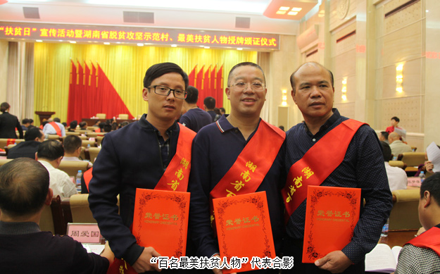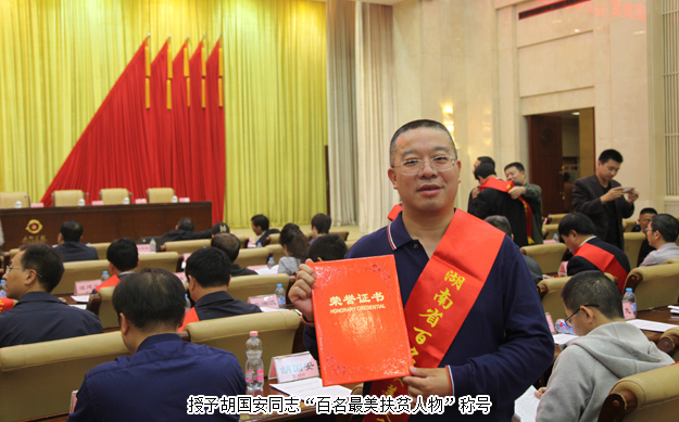 2016年10月15日下午,湖南長沙,“‘扶貧日’宣傳活動(dòng)暨湖南省脫貧攻堅(jiān)示范村、最美扶貧人物授牌頒證儀式”在九所賓館會(huì)議中心隆重舉行。參加會(huì)議的主要領(lǐng)導(dǎo)有湖南省政府副秘書長曹英華,省扶貧辦黨組書記、主任王志群等單位主要負(fù)責(zé)人。綠之韻集團(tuán)董事長胡國安先生被授予湖南“百名最美扶貧人物”稱號(hào),并出席了本次活動(dòng)。