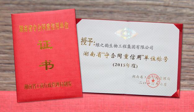 守合同、重信用的誠信經(jīng)營史,是綠之韻良性經(jīng)營、健康發(fā)展的企業(yè)之根本。十三年來,綠之韻始終秉承“和誠立信、競超興業(yè)”的發(fā)展理念,把“守合同、重信用”作為企業(yè)發(fā)展的生命線,持續(xù)推進(jìn)企業(yè)誠信建設(shè),致力于企業(yè)品牌打造。在經(jīng)營規(guī)模日漸攀升的同時,公司合同信用管理體系日益健全,保持經(jīng)營行為規(guī)范,履約狀況良好,經(jīng)營效益不斷提高,取得了慢發(fā)而先至的跨越式發(fā)展。獲評2015年度湖南省“守合同重信用單位”榮譽(yù)稱號,是對綠之韻集團(tuán)守法經(jīng)營、依法納稅、講究信用、誠信經(jīng)營、品牌影響的充分肯定,綠之韻將一如既往,再接再厲,不斷提升企業(yè)誠信建設(shè)工作水平,努力為廣大消費者提供更加優(yōu)質(zhì)、滿意的產(chǎn)品和服務(wù)。