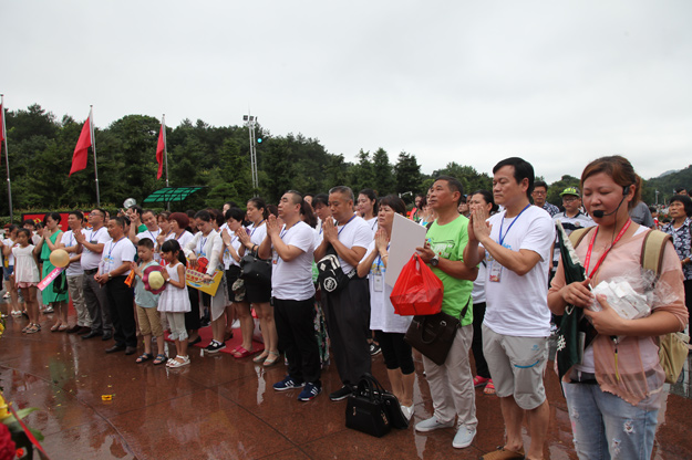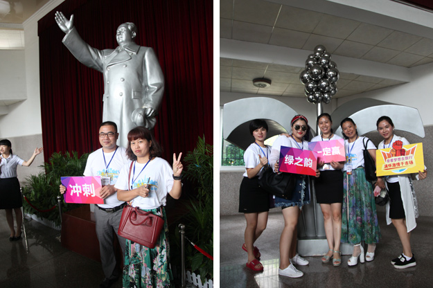 第二站,我們來(lái)到了為紀(jì)念毛澤東誕辰一百周年而修建的神奇的毛主席銅像廣場(chǎng),主席身軀偉岸,手握書卷,學(xué)者風(fēng)范。營(yíng)銷精英們莊嚴(yán)肅穆,攜著花籃,虔誠(chéng)鞠躬,默默將心中的愿望與主席分享,希望美愿成真!