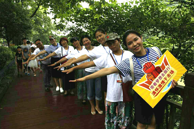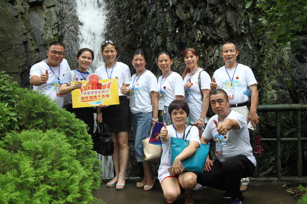 “一鉤流水一拳山,虎踞龍盤在此間;靈秀聚鐘人莫識(shí),石橋如鎖幾重關(guān)。”此詩(shī)描繪的就是我們最后一站——滴水洞。這里竹木繁茂,山澗流水潺潺,煞是涼爽。營(yíng)銷精英們紛紛卸下疲憊、放慢腳步與美景合影。