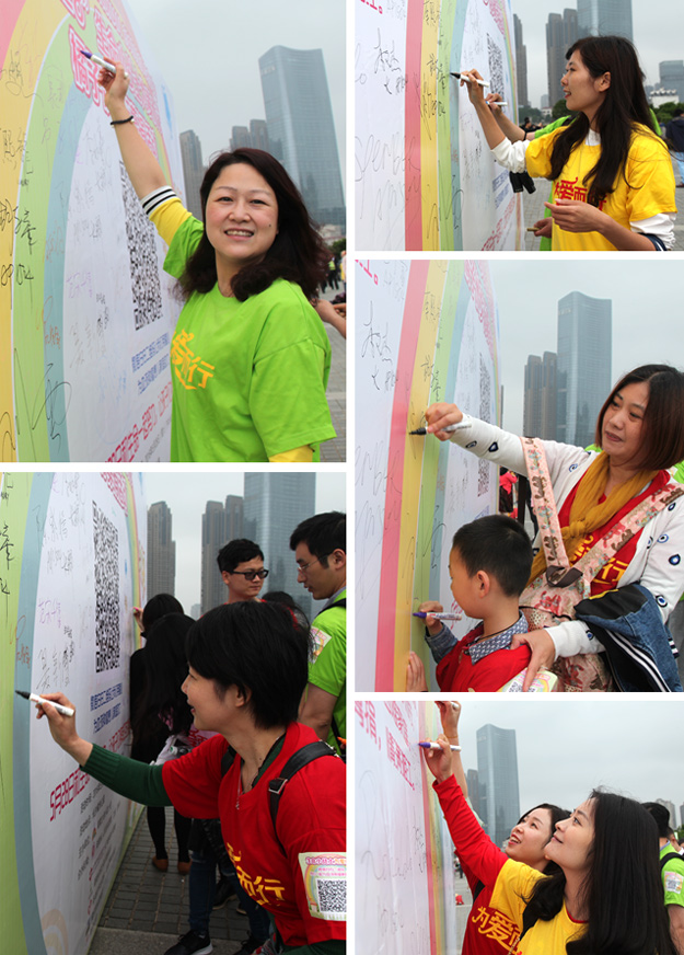 下午14點(diǎn)30分,綠之韻公益基金會(huì)牽手生命小戰(zhàn)士會(huì)“橘子洲步行募捐”活動(dòng)舉行了簡(jiǎn)短的啟動(dòng)儀式?;顒?dòng)主持人簡(jiǎn)單介紹了今天的活動(dòng)流程,愛心義工們帶來了感人的愛的口號(hào)呼喊。參加行走活動(dòng)的綠之韻家人們拉起“為愛行走”的活動(dòng)宣傳條幅,穿著色彩鮮艷的活動(dòng)T恤,希望通過愛心行走活動(dòng)引起社會(huì)各界對(duì)腫瘤、血液疾病的貧困患兒的廣泛關(guān)注,更希望在六一前夕為孩子們帶來一段歡樂的彩色記憶。