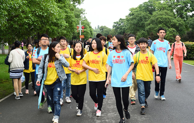從橘子洲頭毛澤東青年藝術(shù)雕像處出發(fā),大家三五成群,沿著既定的線路徒步前行,相識(shí)的、不相識(shí)的,大家揮舞雙手,以眼神鼓勁,用微笑問候,朝著一個(gè)共同的夢(mèng)想、共同的愛心、共同的追求邁進(jìn)。行走隊(duì)伍吸引了許多民眾的廣泛關(guān)注,民眾們自發(fā)自覺融入到愛心隊(duì)伍當(dāng)中。此次行走活動(dòng)途徑攬?jiān)峦?、橘洲客棧、?shī)詞碑、桃園等景點(diǎn),湘江兩岸風(fēng)光盡收眼底,沿途的歡聲笑語(yǔ)和美麗風(fēng)景讓大家忘記了行走的疲勞。