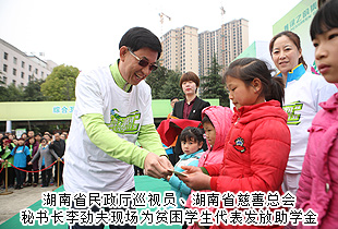綠韻健跑,大愛隨行?;顒蝇F場,10位來自瀏陽烏石村的貧困學生代表在“綠跑”啟動儀式上獲得愛心捐贈。湖南省民政廳巡視員、湖南省慈善總會秘書長李勁夫上臺發(fā)表講話,他表示,今年全國兩會上,中國首部《慈善法》通過審議。綠之韻作為具有高度責任感民族企業(yè),一直從事社會公益慈善事業(yè),是整個湖南省的企業(yè)公民旗幟代表。全民綠跑,堅持“健康+慈善”的公益理念便是《慈善法》的生動體現和最好宣傳。愛心改變命運,希望更多有愛心的人士和企業(yè)都能參與到公益慈善活動中來,幫助需要幫助的人一起脫貧致富,奔向小康。據悉,按照“綠跑”活動規(guī)則,每一名在45分鐘內跑完5公里全程的選手,都能募得由綠之韻公益基金會提供的1000元善款,用于面向貧困山區(qū)失學兒童、孤殘兒童、患病兒童群體的“綠+兒童關愛”精準扶貧項目。