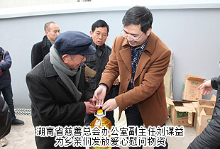 春節(jié)將至,鄉(xiāng)音裊裊,聊敘家鄉(xiāng)情;綠韻大愛(ài),恩情悠悠,反哺桑梓心。2016年2月4日,中共安化縣委常委、政法委書(shū)記羅必勝,湖南省慈善總會(huì)副會(huì)長(zhǎng)、綠之韻集團(tuán)董事長(zhǎng)胡國(guó)安,湖南省慈善總會(huì)辦公室副主任劉謀益,湖南省志愿服務(wù)指導(dǎo)中心副主任蔣鐵陽(yáng),安化縣慈善總會(huì)辦公室主任肖晟,中共安化縣冷市鎮(zhèn)黨委書(shū)記周華山、鎮(zhèn)長(zhǎng)楊鋒,綠之韻公益基金會(huì)秘書(shū)長(zhǎng)蔣文及愛(ài)心志愿者代表等一行來(lái)到湖南省安化縣冷市鎮(zhèn)胡家村,為鄉(xiāng)親們送上慰問(wèn)金、米、油和日用品等物資,為他們送去新春的祝福。湖南都市頻道、紅網(wǎng)、瀟湘晨報(bào)、安化電視臺(tái)等多家媒體對(duì)本次愛(ài)心慰問(wèn)活動(dòng)進(jìn)行了報(bào)道。