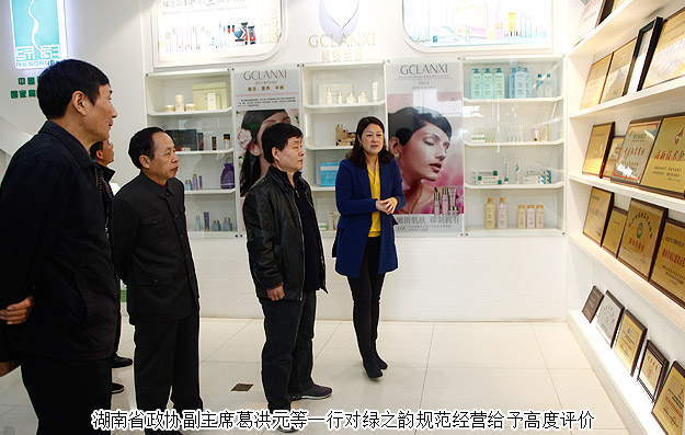 會(huì)后,湖南省政協(xié)副主席葛洪元等領(lǐng)導(dǎo)一行來(lái)到綠之韻進(jìn)行參觀指導(dǎo)。在綠之韻集團(tuán)董事長(zhǎng)胡國(guó)安、董事常務(wù)副總裁勞嘉的陪同下,考察組一行首先參觀了綠之韻集團(tuán)大樓,聽(tīng)取了勞嘉副總裁對(duì)綠之韻系列產(chǎn)品、集團(tuán)總部辦公區(qū)、企業(yè)資質(zhì)和榮譽(yù)展示區(qū)的介紹。綠之韻“以產(chǎn)品為導(dǎo)向”和“互聯(lián)網(wǎng)+大健康產(chǎn)業(yè)”的發(fā)展戰(zhàn)略,優(yōu)質(zhì)的產(chǎn)品研發(fā)體系和良好的企業(yè)形象得到了考察組各位領(lǐng)導(dǎo)的高度認(rèn)可和贊譽(yù)。