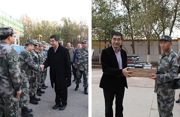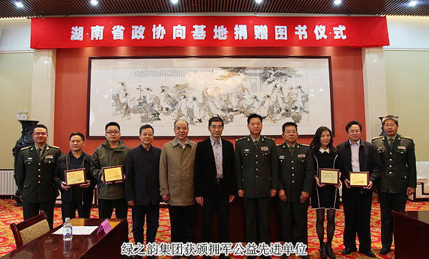 千年胡楊,不朽精神脊梁;大漠戈壁,盡顯英雄本色。在充滿光榮與夢(mèng)想的甘肅酒泉衛(wèi)星發(fā)射基地,2015年10月24—27日,中共十八屆三中全會(huì)即將召開之際,“湘水情長(zhǎng)”——湖南省政協(xié)委員文化擁軍活動(dòng)在這里舉行?;顒?dòng)由總裝備部政治部、湖南省政協(xié)辦公廳主辦。活動(dòng)向總裝備部政治部指定的50個(gè)基層連隊(duì)捐贈(zèng)價(jià)值過百萬的雜志書籍、計(jì)算機(jī)設(shè)備等?;顒?dòng)由湖南省政協(xié)副主席張大方帶隊(duì)前往,省政協(xié)副秘書長(zhǎng)、辦公廳主任、研究室主任吳志憲、省政協(xié)研究室副主任江涌等領(lǐng)導(dǎo)也隨隊(duì)前往,湖南衛(wèi)視、基地東風(fēng)電視臺(tái)全程報(bào)道。綠之韻集團(tuán)作為活動(dòng)支持單位,獲頒“湘水情長(zhǎng),文化擁軍”擁軍公益先進(jìn)單位,胡國(guó)安委員參與活動(dòng)。