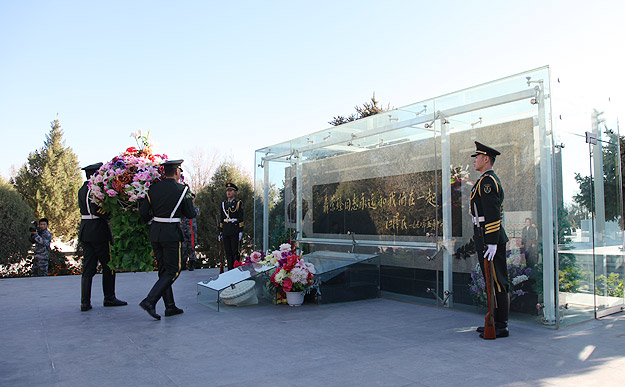 “死在戈壁灘、埋在青山頭”。26日上午,湖南省政協(xié)委員文化擁軍活動(dòng)一行來到東風(fēng)革命烈士陵園,向革命先烈敬獻(xiàn)花籃。陵園里安葬著聶榮臻元帥和為我國(guó)航天科技事業(yè)獻(xiàn)身的700名烈士。張大方副主席等一行瞻仰了聶帥墓和革命紀(jì)念碑,對(duì)烈士們的奉獻(xiàn)精神表示由衷敬意。