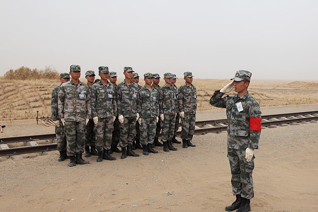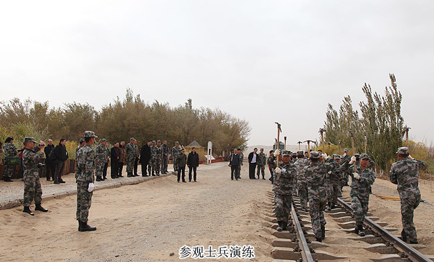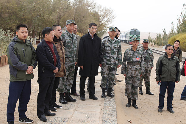 “狂風(fēng)可卷千堆雪,壯士能抵萬頃沙”。25日,湖南省政協(xié)委員文化擁軍活動(dòng)一行搭乘軍用專列,近4小時(shí)車程后來到基地鐵路管理處的“鐵四連”進(jìn)行捐贈(zèng)慰問活動(dòng)。駐地在巴丹吉林沙漠邊緣的“鐵四連”是基地最偏遠(yuǎn)、最艱苦的連隊(duì),為了防止風(fēng)沙埋道,保證線路安全暢通,風(fēng)沙越大越要在線路上堅(jiān)守。