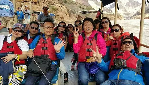 玩不但要盡興,還要心跳,綠之韻伙伴們乘坐直升飛機游覽,居高遠(yuǎn)望,然后坐游船在科羅拉多峽谷水上游覽,大自然的雄偉壯觀令得所有伙伴們的胸襟抱負(fù)也更加擴展開來。