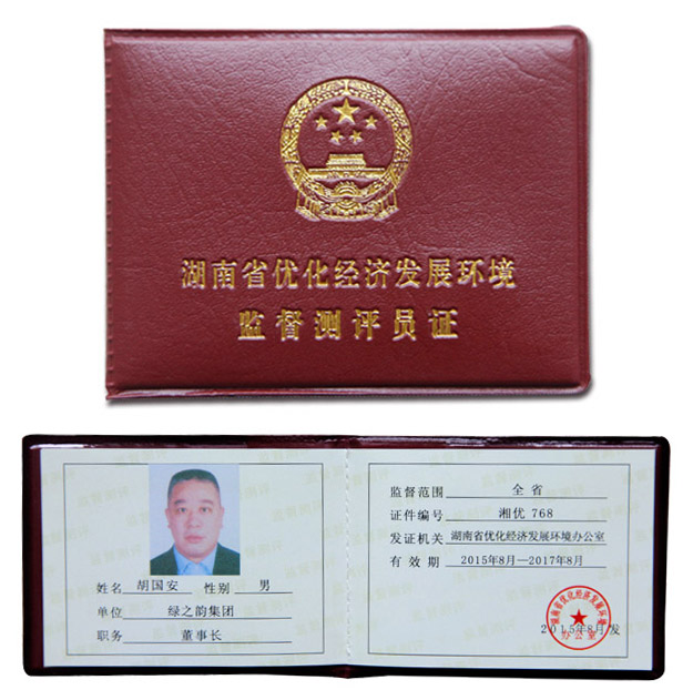 湖南作為中部崛起戰(zhàn)略中快速發(fā)展的省份,經(jīng)濟也在飛速發(fā)展中,優(yōu)化環(huán)境成為當下刻不容緩的事情。2015年9月10日,綠之韻集團從全省上百萬家企業(yè)中脫穎而出,被湖南省優(yōu)化經(jīng)濟發(fā)展環(huán)境辦公室評為監(jiān)督測評點,湖南省政協(xié)委員、綠之韻集團董事長胡國安被評選為湖南省經(jīng)濟發(fā)展環(huán)境監(jiān)督測評員。在2015—2017年間,綠之韻集團將全面參與對全湖南省機關(guān)效能建設(shè)和優(yōu)化經(jīng)濟發(fā)展環(huán)境的監(jiān)督測評。此舉,對優(yōu)化企業(yè)發(fā)展環(huán)境、促進全省效能提升,意義重大。
