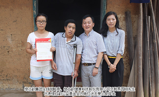 得知了驕陽的故事后,綠之韻集團(tuán)董事、常務(wù)副總裁勞嘉女士代表湖南省綠之韻公益基金會送去了一萬元愛心助學(xué)金,希望驕陽可以好好學(xué)習(xí),將來回報家人,回報社會。
