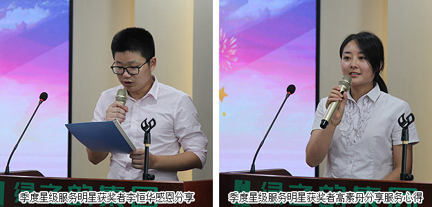 2015年新晉員工在大會上進(jìn)行了自我介紹和風(fēng)采展示,彰顯出新人積極向上的精神面貌。同時,大會還對表現(xiàn)優(yōu)秀的員工和集體給予了隆重表彰:業(yè)務(wù)服務(wù)部、數(shù)據(jù)管理中心、產(chǎn)品綜合管理部、山東分公司、儲運部榮獲“第二季度優(yōu)秀服務(wù)集體”;侯俊霞、李恒華、王艷、譚紅、陳建輝、李倩婷、王芬、高素丹、夏丹、曹峰、盧再林、劉圣雄、趙光意等十多位員工光榮成為“第二季度服務(wù)明星”;夏運良、王芬、王壯在黨支部的領(lǐng)導(dǎo)下,積極參與黨組織各項活動,榮獲“綠之韻黨支部優(yōu)秀共產(chǎn)黨員”稱號。獲獎部門代表、個人依次踏上領(lǐng)獎臺,享受大家的聲聲祝福和熱烈掌聲,分享快樂和喜悅。