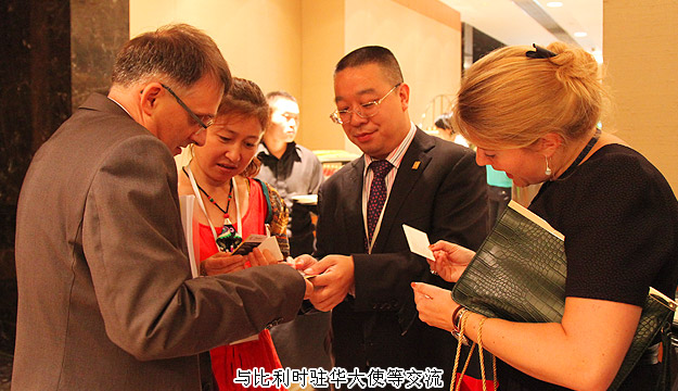 2015年6月20日—6月28日,比利時國王菲利普及馬蒂爾德王后訪華。在為期八天的訪問行程中,國王夫婦進行了一系列官方、商務(wù)、文化和學(xué)術(shù)活動。23日,國家主席習(xí)近平在人民大會堂東門外廣場舉行歡迎儀式,歡迎菲利普國王一行。本次陪同出訪的有比利時外交大臣、3位比利時地區(qū)首席大臣,還包括比利時企業(yè)、高校、媒體等重要代表。24日“投資比利時”研討會在北京金融街威斯汀大酒店二層盛大召開。比利時國王菲利普先生、商務(wù)部副部長王受文先生、比利時—中國經(jīng)貿(mào)委員會主席Dewit Bernard先生出席并分別致詞。綠之韻集團董事長胡國安受比利時駐華大使館邀請出席本次會議。