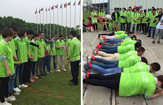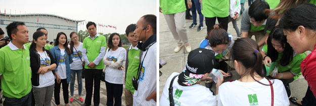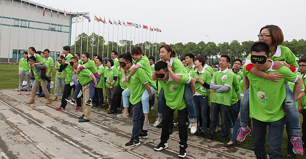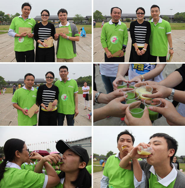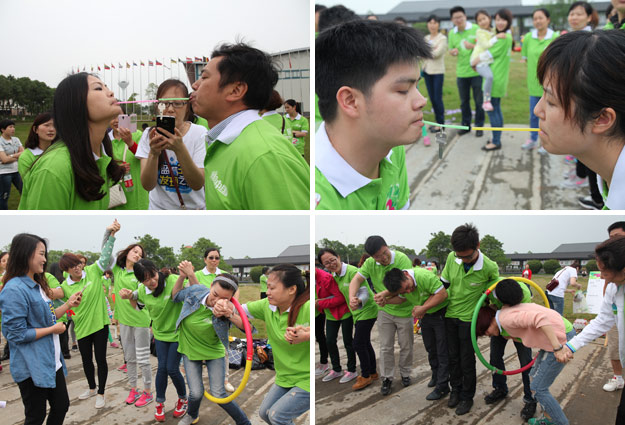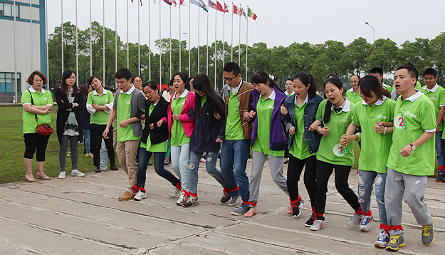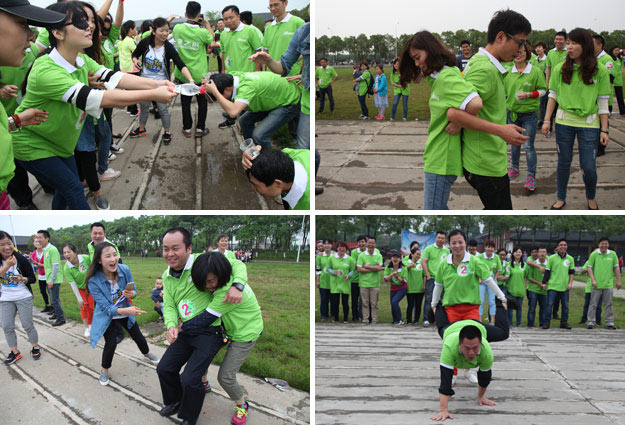 在千龍湖度假村的活動草坪上,活動組委會將所有參加活動的員工分成了六組,在六個小組間展開了別開生面、妙趣橫生的趣味競技活動。在綠之韻集團董事長胡國安先生、董事常務副總裁勞嘉女士的親切指導下,在現(xiàn)場工作人員的精心組織和安排下,六個小組各推選出一個組長,并帶領所有組員充分參與“長龍越嶺”、小組接力、綁腿賽跑等團隊協(xié)作拓展活動。