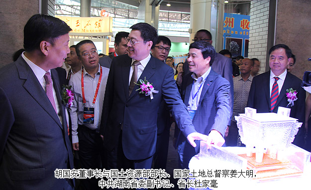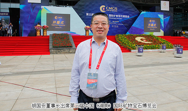 2015年5月21-25日, 由湖南省人民政府和國土資源部聯(lián)合主辦,省國土資源廳、長沙市政府、郴州市政府等聯(lián)合承辦的第三屆中國(湖南)國際礦物寶石博覽會在郴州舉行。國土資源部部長、黨組書記、國家土地總督察姜大明宣布第三屆礦博會開幕,湖南省委副書記、省長杜家毫出席開幕式并講話。中共湖南省委常委、常務(wù)副省長陳肇雄主持開幕式。湖南省工商聯(lián)(總商會)副會長、綠之韻集團董事長胡國安受邀出席開幕式,并陪同國土資源部部長、黨組書記、國家土地總督姜大明,中共湖南省委副書記、湖南省人民政府省長杜家毫等領(lǐng)導一行視察展館。