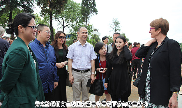 九點半到達衡陽春天服務中心時,活動現(xiàn)場已然是一片歡樂的海洋。衡陽春天服務中心的新家院子用鮮艷的花朵裝扮一新,小朋友們穿著漂亮的衣衫,拿著彩色的氣球,在護理員的陪同下玩耍。還有很多和綠之韻人一樣的愛心人士、志愿者以及遠道而來的國際義工們都歡聚在此。沒有陌生與隔閡,不分國籍和語言,胡國安董事長和勞嘉副總裁帶著綠之韻志愿者們和孩子一起說話、唱歌、做操……每一個人臉上都洋溢著快樂純粹的笑容。