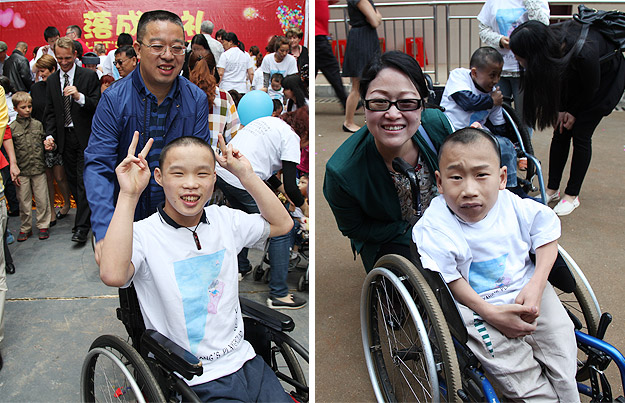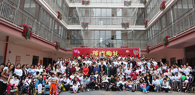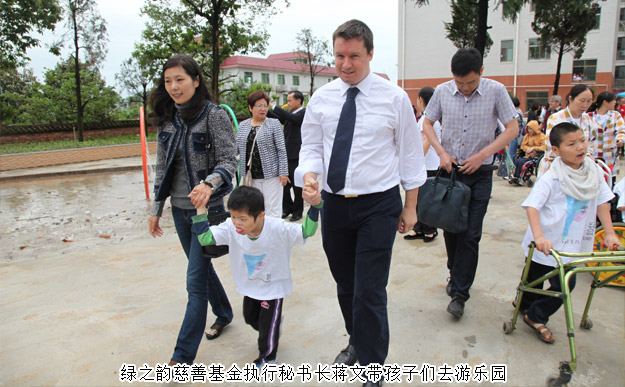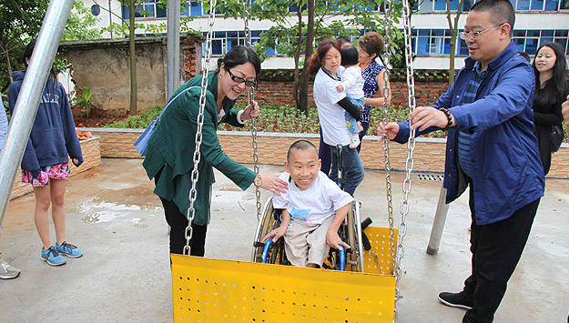 隨后,綠之韻愛心志愿者們與分配的小家庭一起,分組陪伴孩子們從新家院子到游樂場玩耍,同孩子們一起用餐和學習。雖然一些孩子動作遲鈍、在語言交流上有一些困難,但孩子們很快和熱情的綠之韻的愛心志愿者們打成一片,玩得非常開心。胡國安董事長和勞嘉副總裁親自為坐在輪椅上的小朋友系上特制秋千的綁帶,讓他們也感受到在秋千上飛起來感覺,孩子們的笑聲感染了現(xiàn)場每一個人。